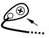 The strength of the magnet can be tested by comparing with other magnets using a small wand made from a cut-off from a wound E string, like in the diagram below. Holding the wand at one end in your fingers put the other end onto the top of the magnet and flick it away from the magnet. In this way you can get a good idea of how strong the magnets are just by feeling how much force is required to make the string depart from the top of the magnet. Compare various magnets and see if the suspect one is less strong than any others that are behaving satisfactorily.